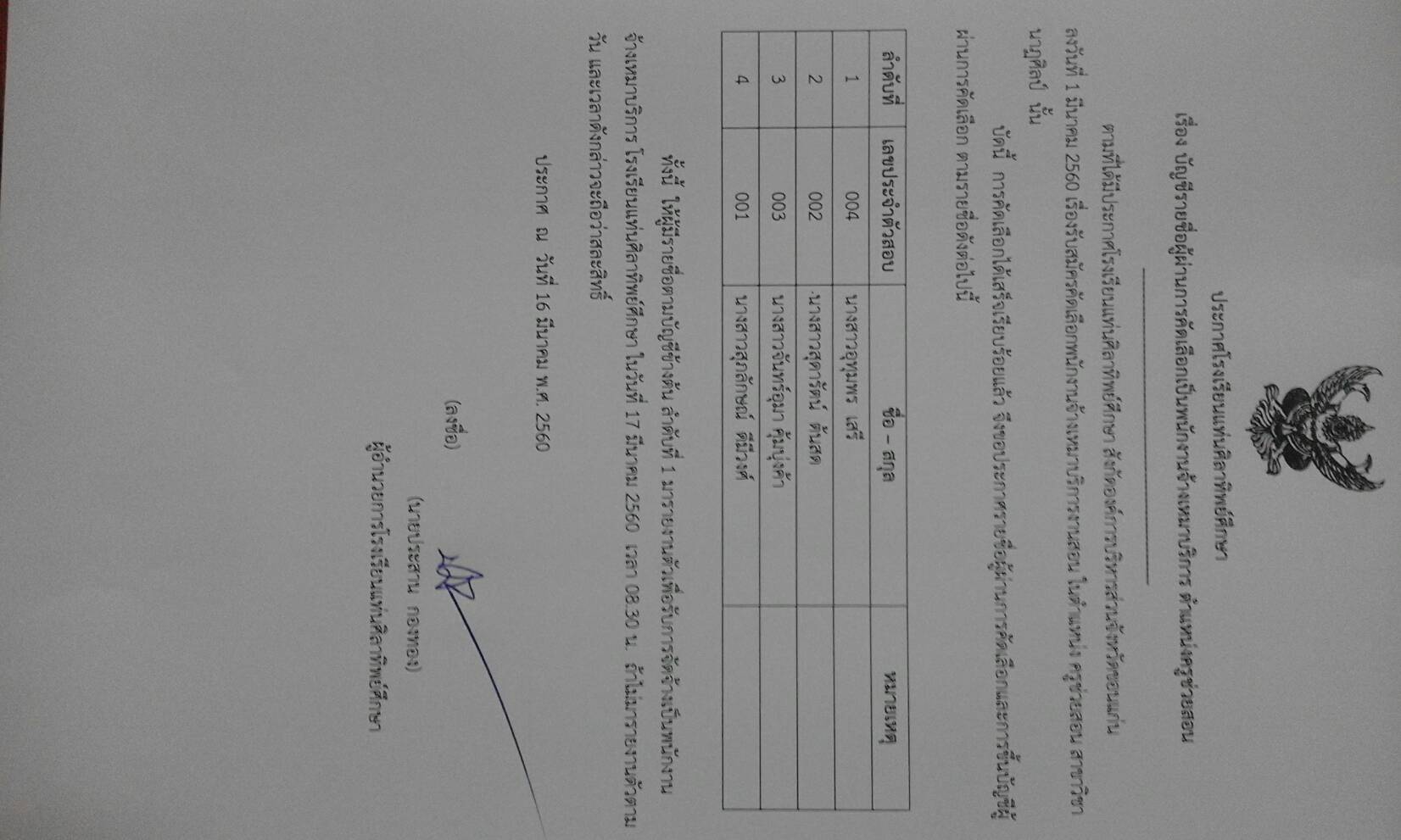 ประกาศผลสอบครูช่วยสอน สาขาวิชา คณิตศาสตร์ พลศึกษา ชีววิทยา ดนตรีศึกษา และนาฎศิลป์