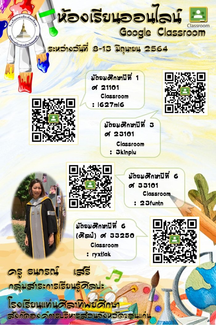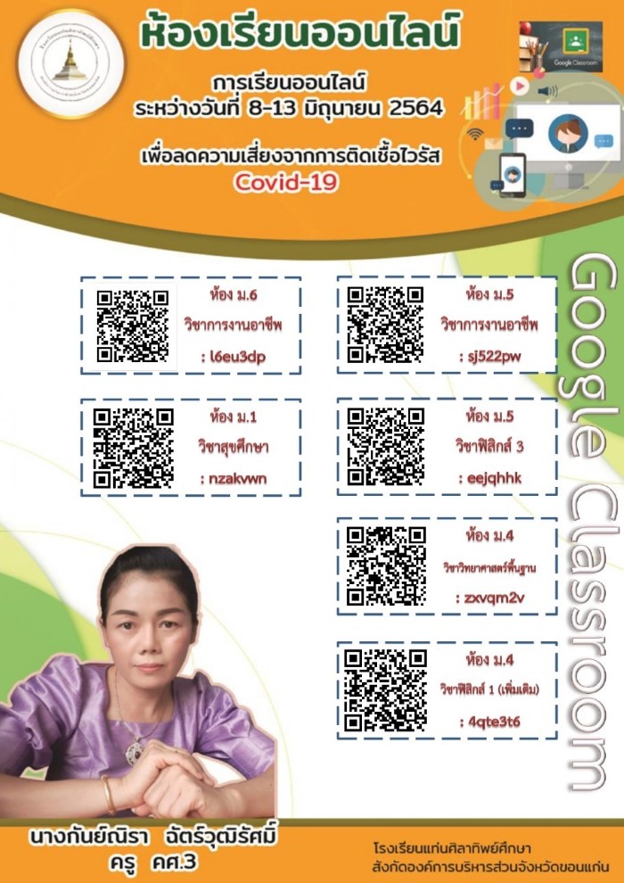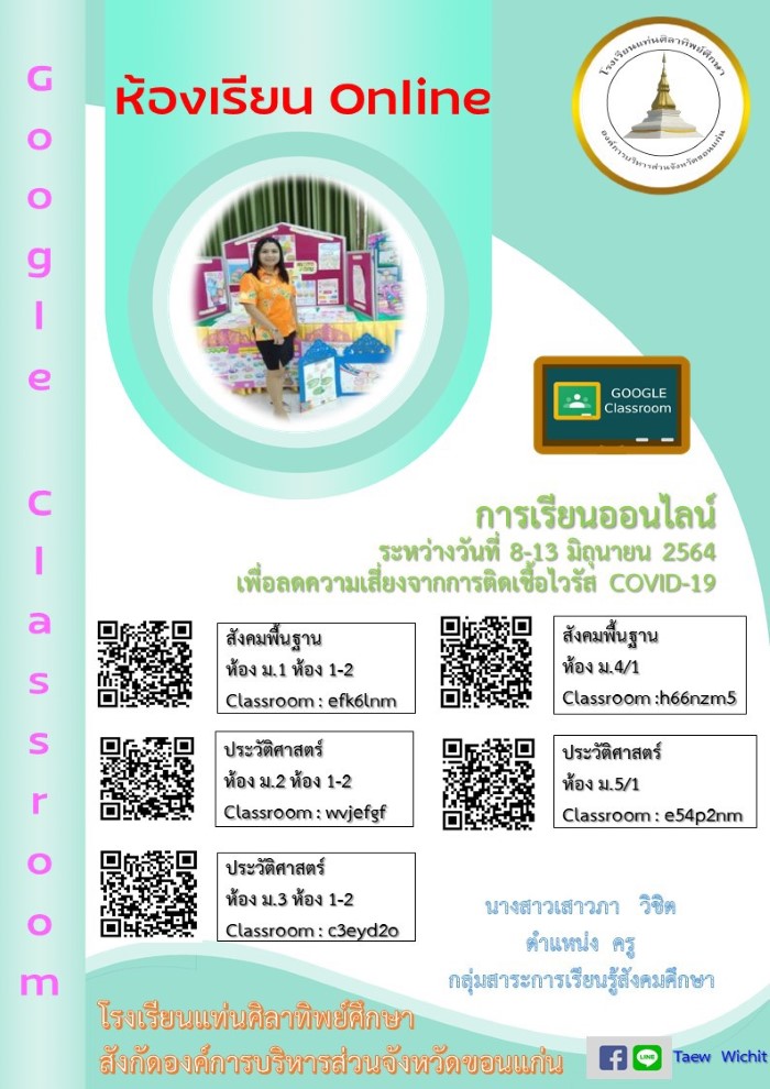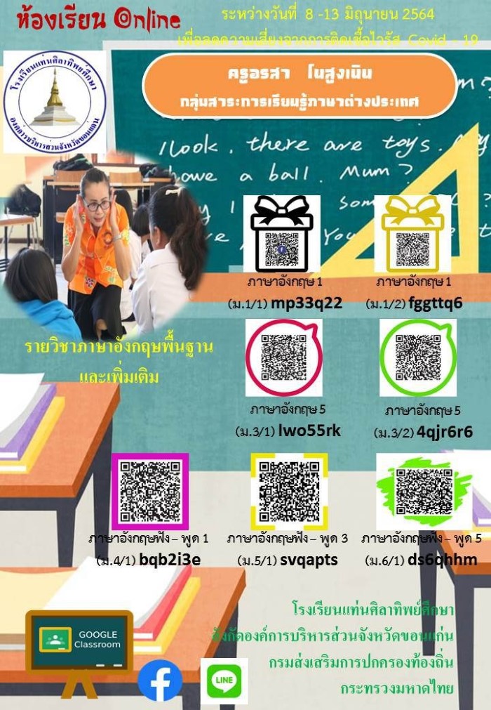 โรงเรียนแท่นศิลาทิพย์ศึกษา เชิญชวนนักเรียนทุกคนเข้ากลุ่มห้องเรียนออนไลน์ Google Classroom การจัดการเรียนการสอนเพื่อให้เวลาเรียนของนักเรียนครบตามหลักสูตร และเพื่อลดความเสี่ยงของการแพร่ระบาดของไวรัสโควิด-19 โดยนักเรียนสามารถเข้าห้องเรียนโดยการสแกน QR Code ต