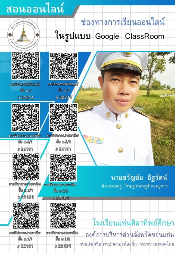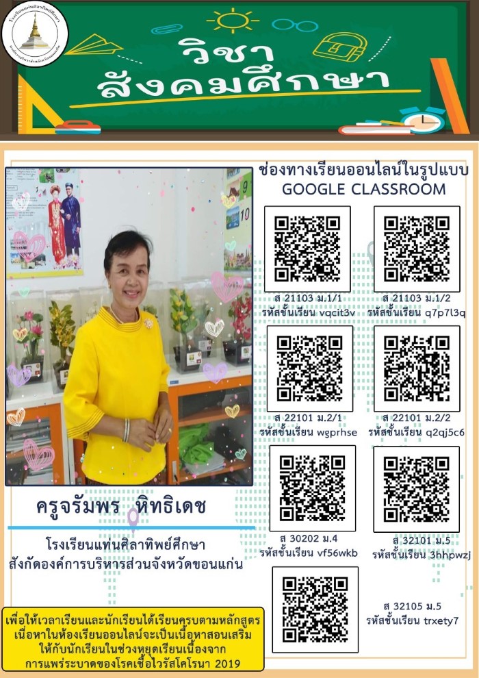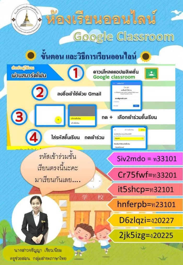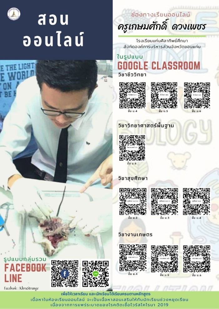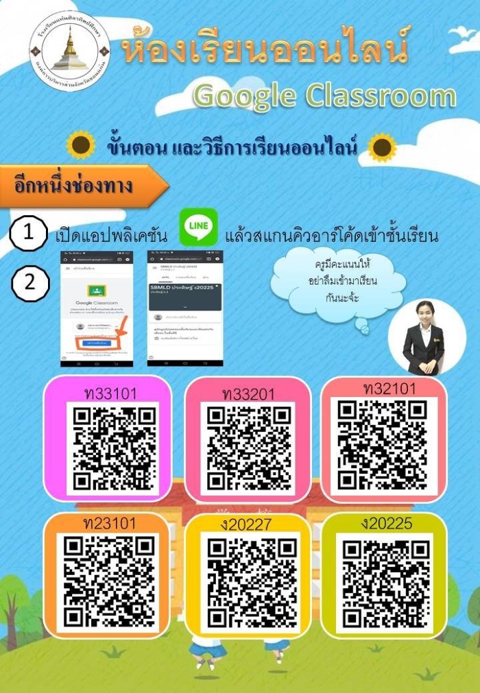 โรงเรียนแท่นศิลาทิพย์ศึกษา เชิญชวนนักเรียนทุกคนเข้ากลุ่มห้องเรียนออนไลน์ Google Classroom การจัดการเรียนการสอนเพื่อให้เวลาเรียนของนักเรียนครบตามหลักสูตร และเพื่อลดความเสี่ยงของการแพร่ระบาดของไวรัสโควิด-19 โดยนักเรียนสามารถเข้าห้องเรียนโดยการสแกน QR Code ต